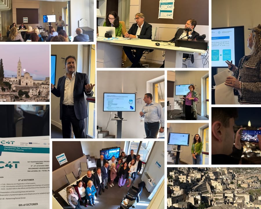 Driving Digital Transformation for SMEs in the Greece–Italy Cross-Border Region The partners of the C4T – Companies4Tomorrow Project, co-funded by the Interreg V-A Greece–Italy Programme, gathered in Matera, Italy, for the 2nd Partners Meeting — a key milestone in our shared mission to strengthen digital innovation capacity and support SMEs across both countries. About C4T Interreg Greece-Italy C4T is a collaborative initiative designed to accelerate the digital transformation of SMEs in Greece and Italy. Our aim is to: Bridge the digitalization gap between regions Empower companies with Industry 4.0 technologies and AI-based learning Establish cross-border Living Labs and Innovation Hubs Promote digital upskilling and workforce resilience Highlights from the Matera Meeting During the meeting, partners reviewed progress and shared insights on the implementation of core project activities: -Joint Strategy and Transnational Plans (WP3): Ongoing policy mapping and comparative analysis to identify key policies, best practices, and innovation gaps across both regions. -Cross-Border Framework & Living Labs (WP3 & WP5): Launch of the C4T-Hub, a hybrid (virtual and physical) node for knowledge exchange and Living Lab coordination, connecting 5 pilot sites — 3 in Italy (Puglia, Calabria, Basilicata) and 2 in Greece (Western Greece, Ionian Islands). -Digital Innovation Tools: Development of three AI-powered platforms: 1️⃣ Skills Taxonomy Platform 2️⃣ Adaptive Learning Management System (LMS) 3️⃣ Collaboration Hub for SMEs -Cross-Border Exchange Visits: Preparations for exchange missions in Basilicata to promote mutual learning, best practice transfer, and collaboration between Greek and Italian innovation ecosystems. -Communication & Visibility (WP2) The consortium is finalizing its Communication Plan to increase visibility, engagement, and trust in cross-border cooperation. New promotional materials, the project logo, and social media channels are now live, with dedicated content rotation among partners to ensure consistent outreach. The next partners’ meeting will be held in Calabria in April 2026, where the team will present the first operational results of the Living Labs and Digital Platforms. Together, we are building a resilient, innovation-driven ecosystem where SMEs can thrive in the era of digital transformation. #cohesionpolicy #interreg #cooperation